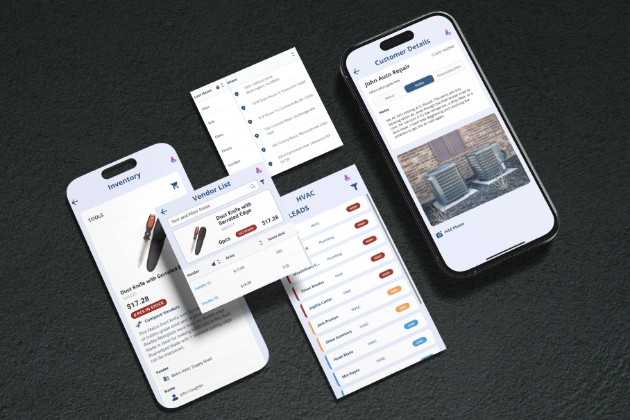 Our design approach for the HVAC app began with in-depth user research, where we interviewed HVAC business owners, technicians, and administrative staff to identify their pain points and workflow challenges. We then mapped out the user journey, highlighting key tasks such as work order management, scheduling, customer tracking, and administrative duties. Using these insights, we developed wireframes and interactive prototypes, focusing on intuitive navigation, streamlined task management, and a mobile-friendly interface to accommodate technicians in the field.