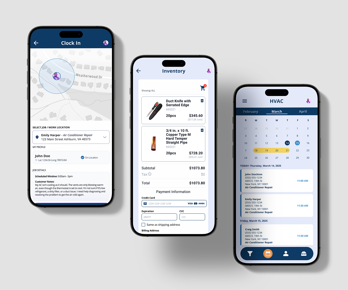 We began with a thorough analysis of the core tasks performed by HVAC businesses, from receiving customer requests and creating work orders to scheduling technicians and tracking job completion. We mapped out each user journey for the app’s key personas: salespersons, technicians, and administrative staff. By visualizing the end-to-end workflow for each role, we identified critical touchpoints and decision points, ensuring that the app would seamlessly guide users through their tasks.